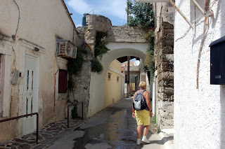 In the early 20th century, Oinousa was populated by lots of rich shipping magnates from Athens so there are lots of huge mansions and a college for training ships officers - presumably under the beady eye of the owners. Since then it has fallen on hard times and many of the mansions have fallen into decay. There seems to be a bit of a renaissance recently though as many of them are being renovated. It's a charming little place with narrow winding streets, lovely views and one of the nicest policewomen we have met. She spent some time processing my papers helping me practice my terrible Greek and then later turned up with her old school textbooks as a present for me! The electricity seems to be free but the island is very short of water so that isn't available.
